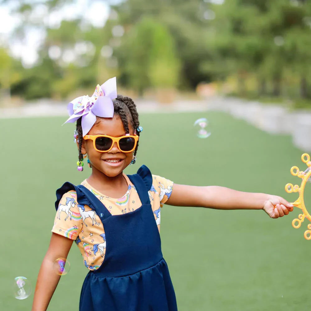 - UV400 lenses that offer 100% UVA + UVB protection + go through rigorous testing to ensure they’re safe for your little one