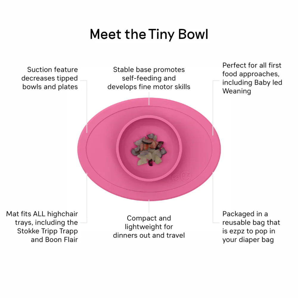 - Tiny Bowl provides a stable base for baby to build fine motor skills