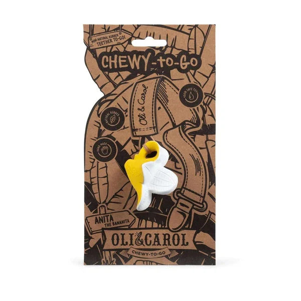 Anita the Bananita is the new baby banana teether concept for babies by Oli&Carol. Designed with an ergonomic shape making it easy to hold and chew on. Including a range of textures, such as raised spots or ribbing, making it very pleasing for little ones to soothe teething gums. This mini teether is easy to hang from a strap and chew it on the go€¦ take your chewy-to-go high & low!