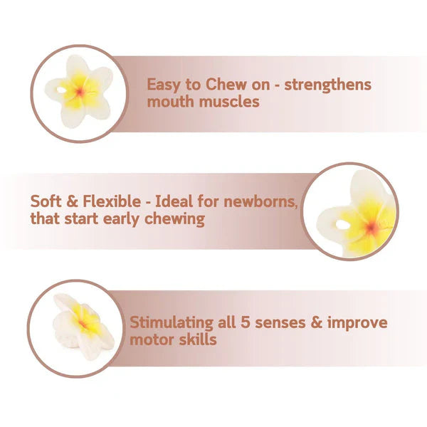 • Soft, easy to grasp and safe to chew. Stimulates baby's senses and soothes teething gums.