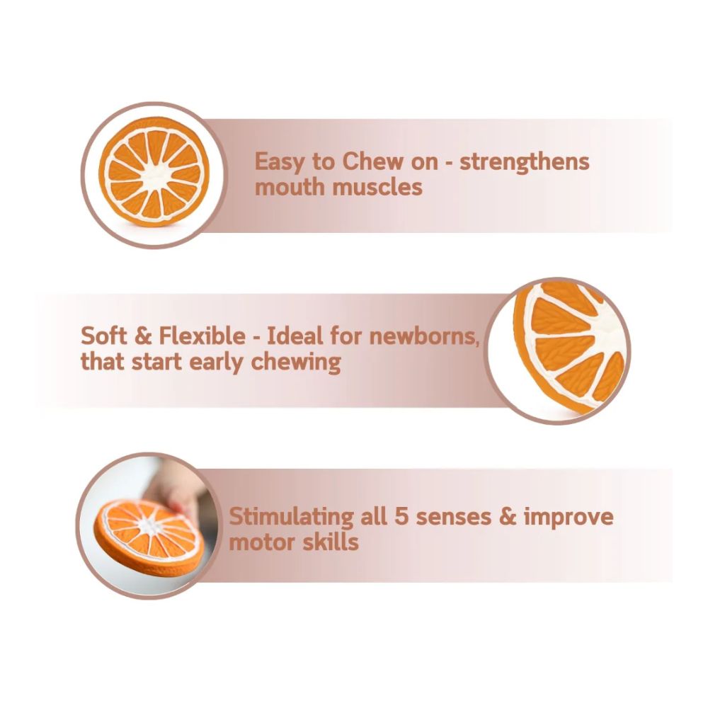 • Soft, easy to grasp and safe to chew. Stimulates baby's senses and soothes teething gums.