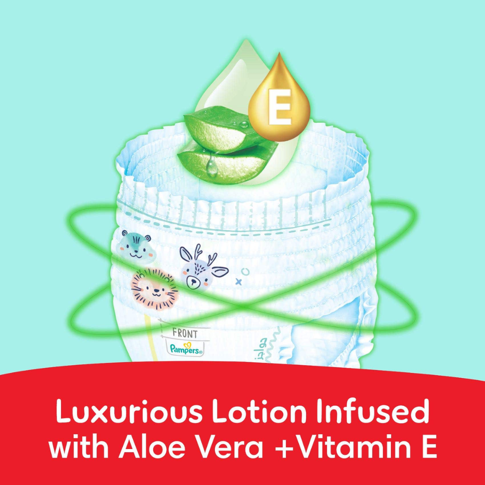 Pampers Ultimate Comfort baby diaper pants is the new and upgraded version of the Pampers Premium care which is crafted to provide superior leakage protection. It offers a cottony soft fit and stretchy belt for ultimate comfort and up to 100% leakage protection. Luxuriously infused with Aloe Vera and Vitamin E, these baby pant diapers create a moisture barrier, keeping your baby’s skin fresh, smooth, and healthy. These new and improved baby diaper pants are designed with double leak guards and can stretch from all sides to adapt to baby’s movements, providing an additional protection against leakage. Pampers diapers are recognized globally for skin health and safety compliance. Accredited by the Skin Health Alliance (SHA), Pampers are proven to be safe when in contact with your baby’s delicate skin.