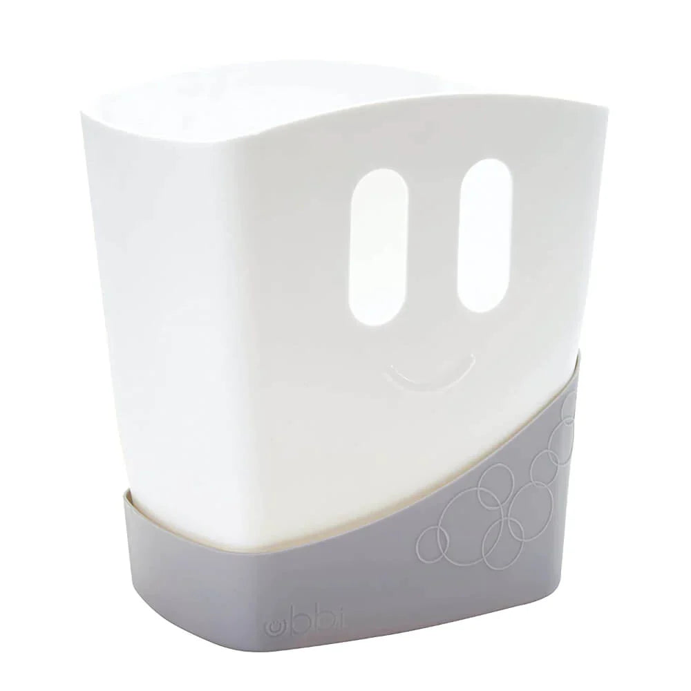 The Ubbi Bath Toy Drying Bin is designed with ingenuity in mind. This free-standing bin allows you to conveniently contain bath toy clutter. Simply scoop the toys out of the tub using the whimsical handles and place the bin on its base. The large holes in the bin allow for fast drying, and the base collects excess water that can be poured out later. Easy to use and wash, this drying bin makes bath time clean up a breeze. PVC, BPA and Phthalate free.