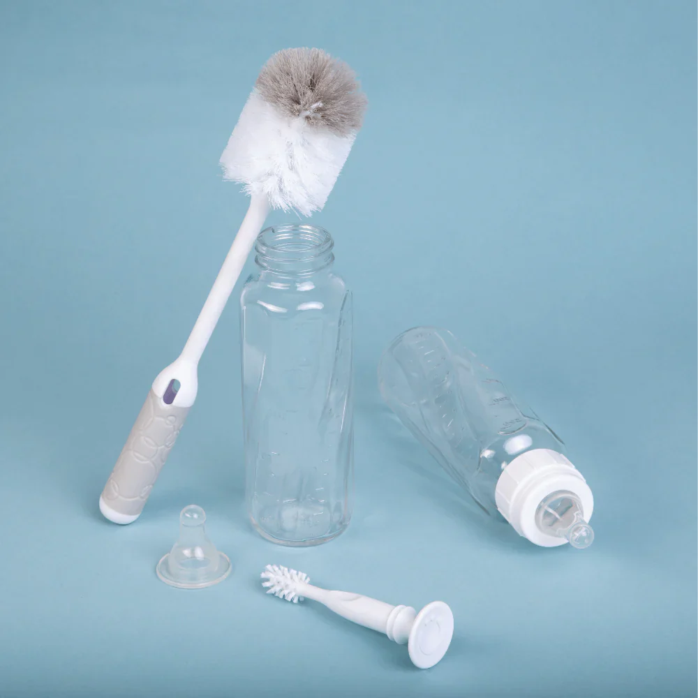 Integrated nipple brush small silicone brush to clean nipples integrated into the handle