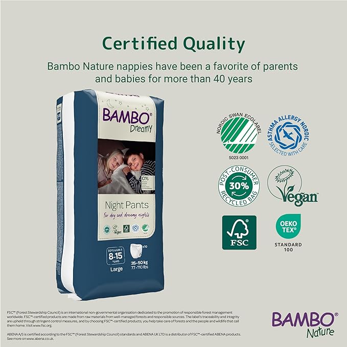 Bambo Dreamy is an ecolabeled Night Pant for children who experience bedwetting. The Night Pants are designed to provide excellent fit, security, and comfort to keep both children and beds dry all night long. The Nordic design makes them look and feel almost like real underwear with a subtle pattern and color to make them as discreet as possible. Perfect both at home or at sleepovers. With Bambo Dreamy Night Pants bedwetting will not stand in the way of a carefree and comfortable night’s sleep.