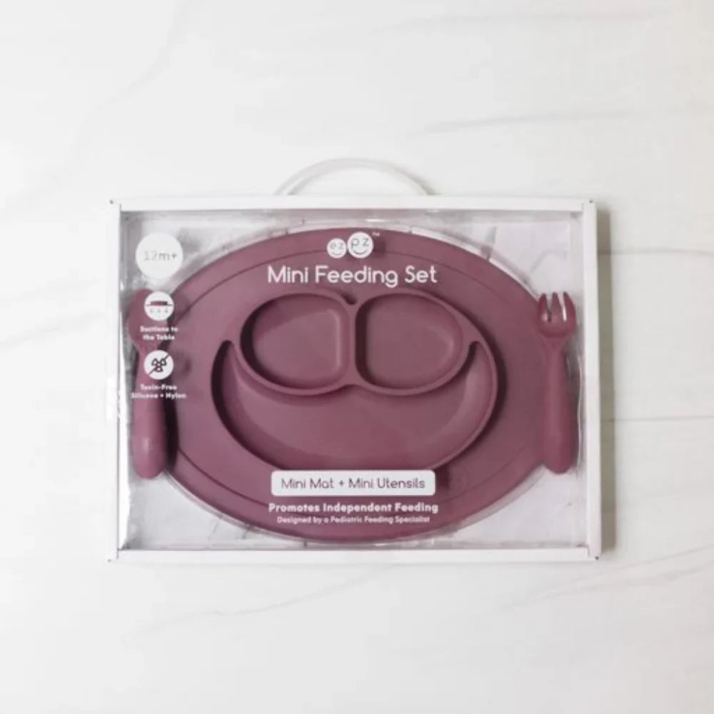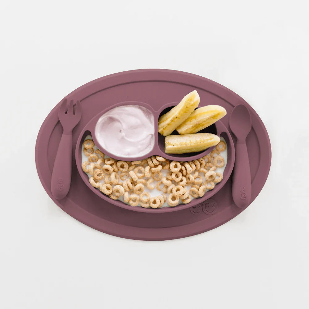 Mini Feeding Set for Toddlers (Mat, Spoon & Fork)- Mauve